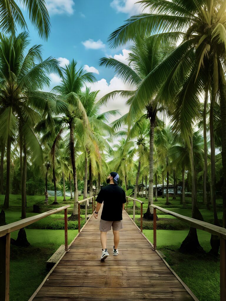 The moment I walked in, I felt like I had stumbled into a secret village. Rows of tall coconut trees shaded narrow wooden walkways, while small stalls offered local treats and handmade crafts. The sound of leaves rustling overhead mixed with chatter from vendors, and every angle begged to be photographed.